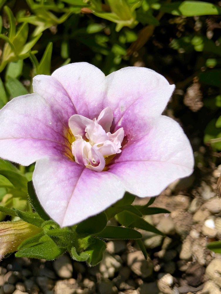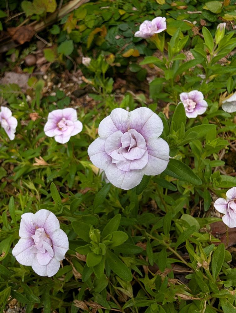 薄い紫色の八重が可愛らしいですね💮カリブラコアは色々な色があるみたいです。他の色にも出会いたいと思っています😄🍀