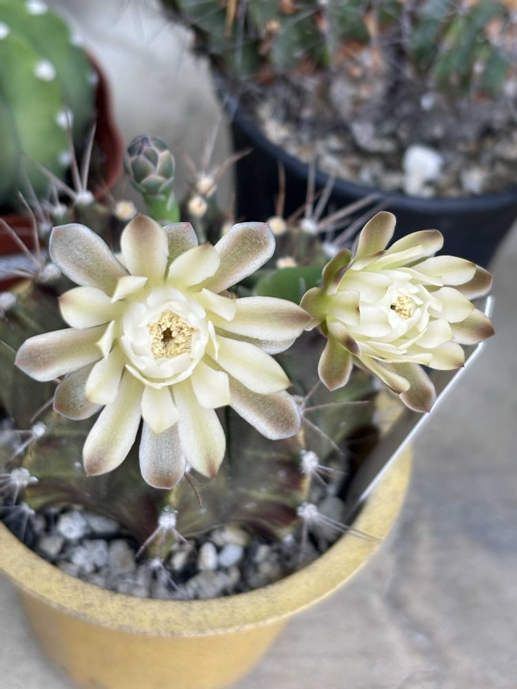 暑い中今回でなん度目かの花が咲いてました🌵色は目立たないけどとても可愛いです