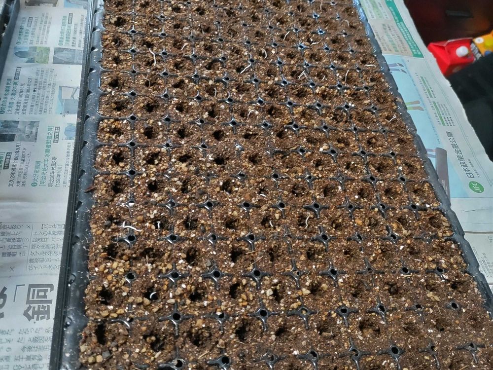 種から育てたのを、小さな苗床に200本づつ植え付け作業してます。4.5日で発芽したのを植え付ける作業