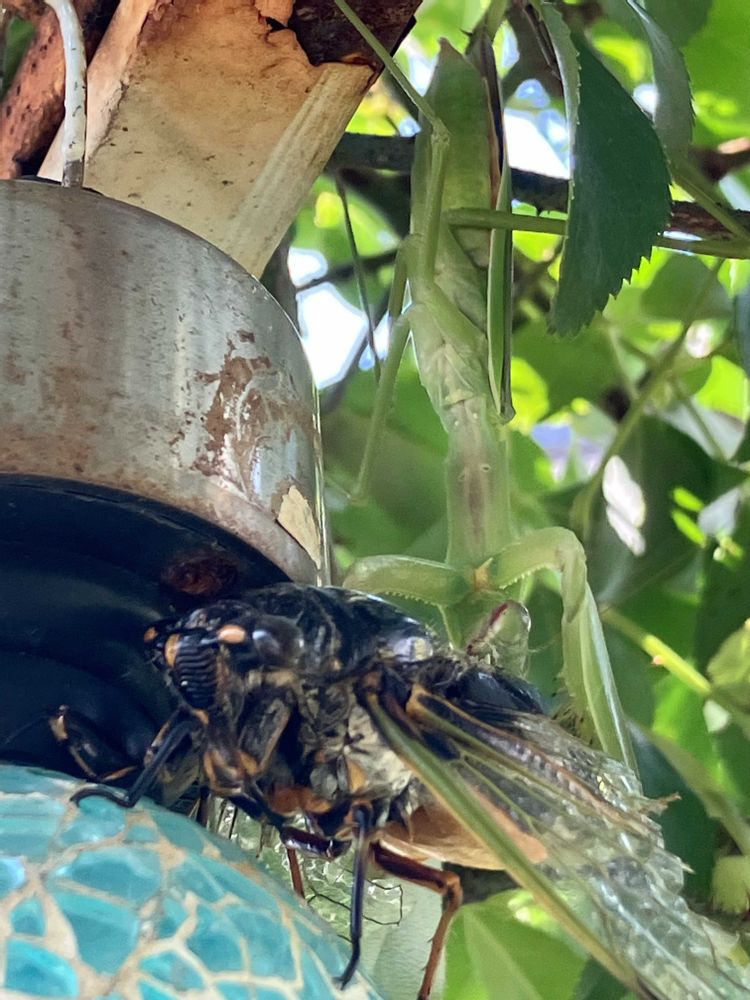 蝉はそろそろ弱ってきてあの世に旅立つ頃ですから、狙われたのでしょう。