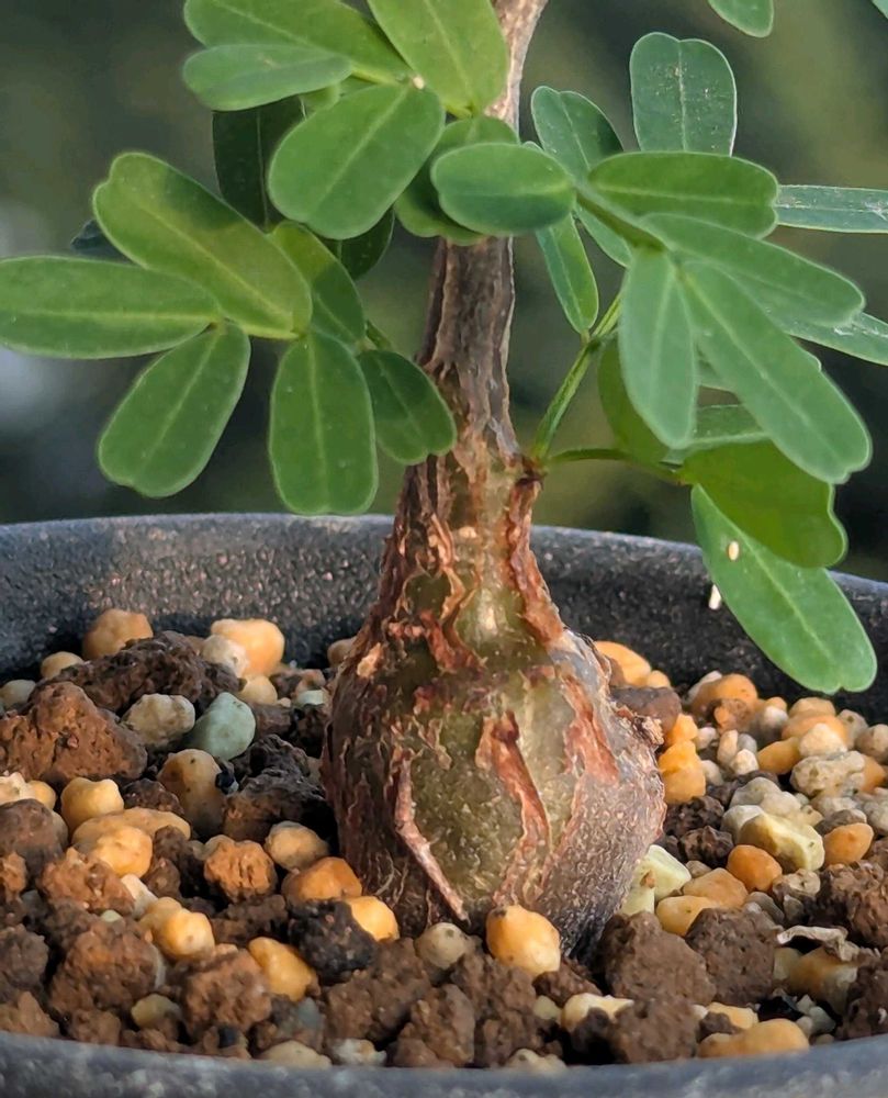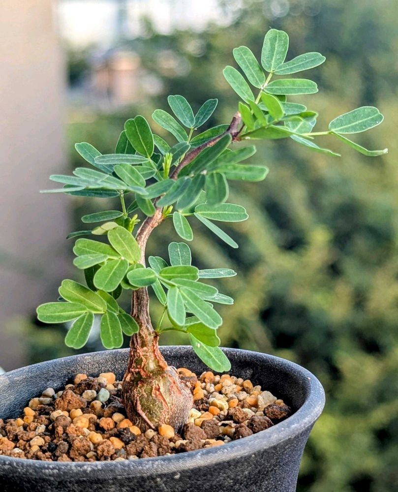 ポコポコ節くれた幹と堅い表皮そして明るい羽状の緑葉が綺麗です