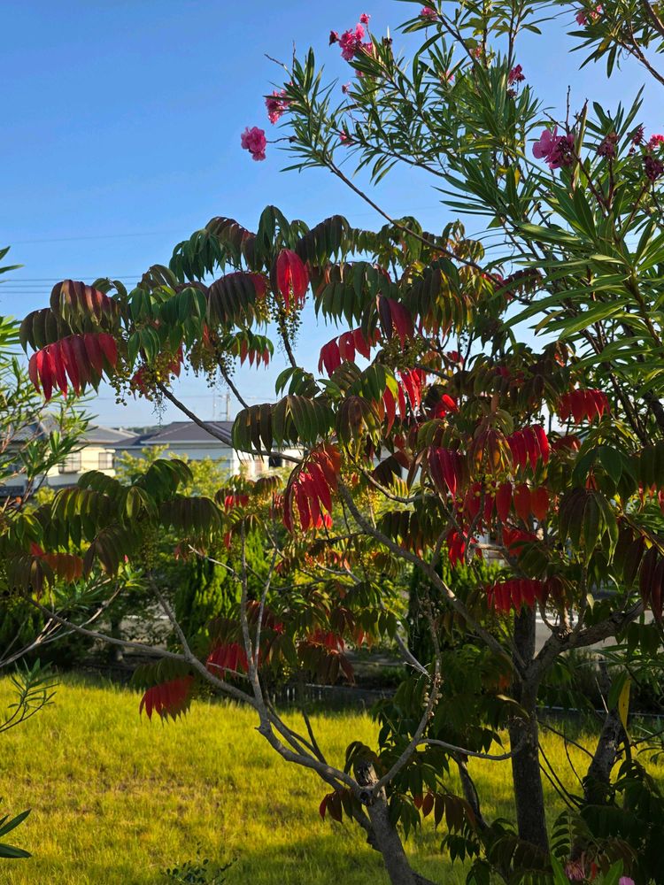 ハゼノキ(櫨)の一部分が紅葉🍁してました。暑さのせい?
