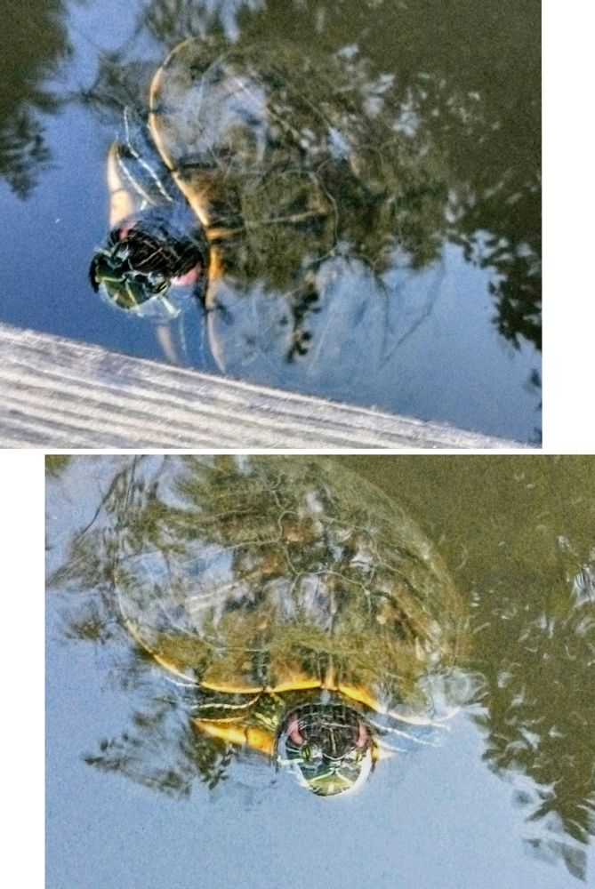 亀🐢さんの水面に🌿が写っているのに