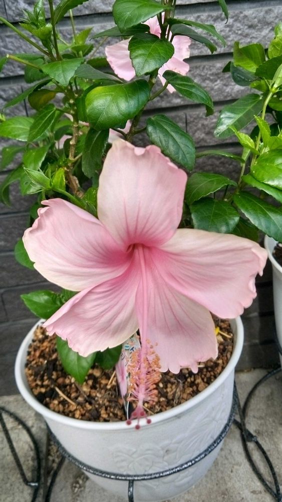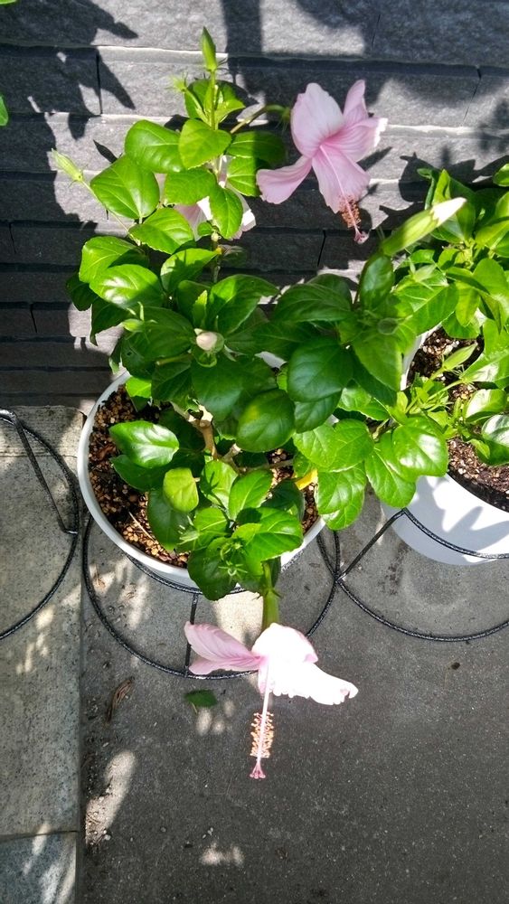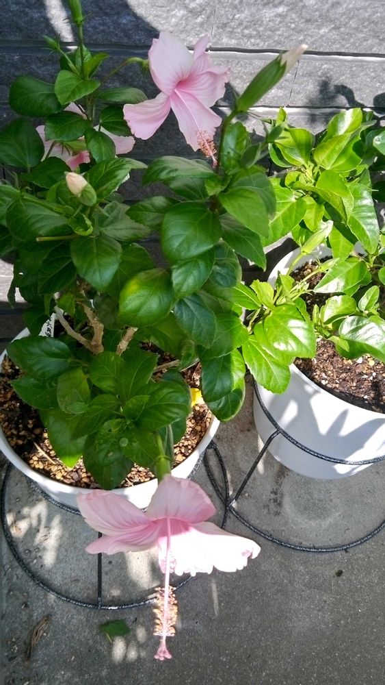 「ハイビスカス ピンクバタフライ」です。こちらはなんと、今日は3輪も花を咲かせてくれました🥰🥰🥰