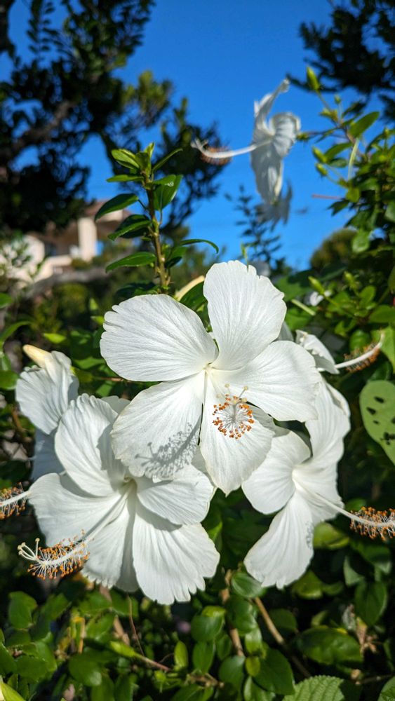 今日 白のハイビスカスがぎゅーぎゅー詰めで咲いてました〜😍