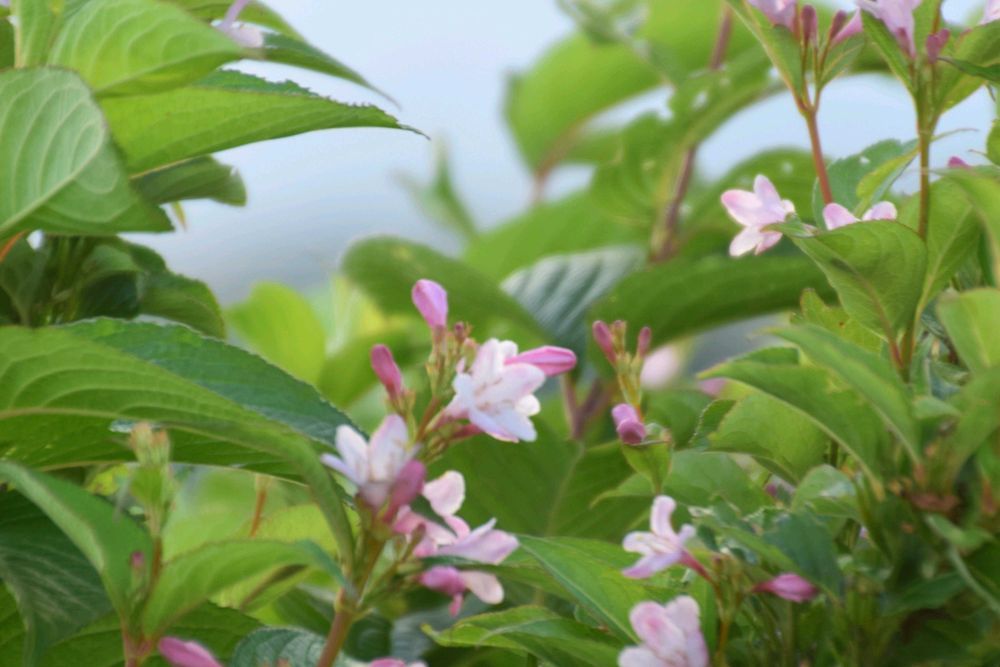 四季咲きは目の前の野鳥公園にあるウツギの名札なんですが、四季咲きではありません(笑)ウツギの季節には咲きますが後は花を見ませんし、名札があってるか定かでは無く、濃淡のあるピンク色から四季咲きかな、と思いましたが、正しい可能性は低いかも。違いがよく分かりません。さまざまな科にウツギと付く植物があり、私も良く分かりません😅