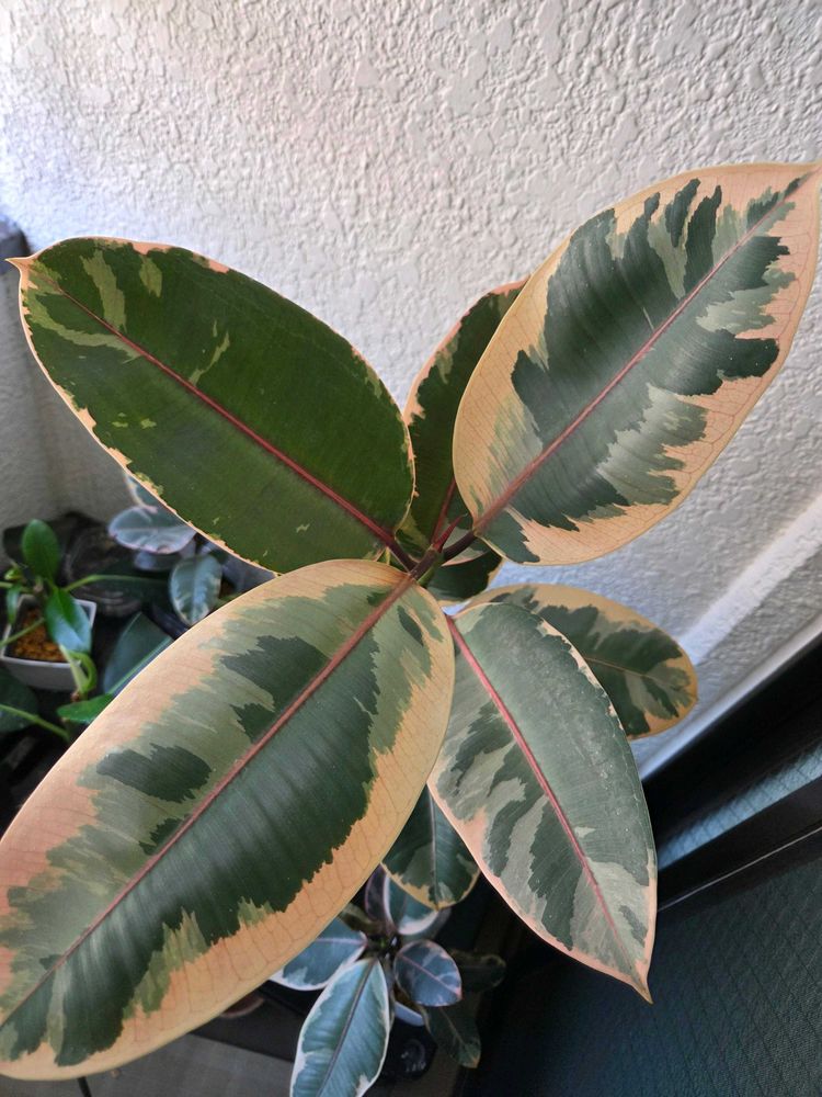 ①シンゴニウムネオン②昨年秋丸坊主にしたコンシンネ、現在幽霊に。観葉植物の樹形をつくるのには時間がかるんですね。長生きしなくては😐③④お気に入りのフィカス。切らないと大変なことにと調べ、幹を太くするため、来春に✂️することに😑➄真夏のちっちゃいミニ薔薇🌹