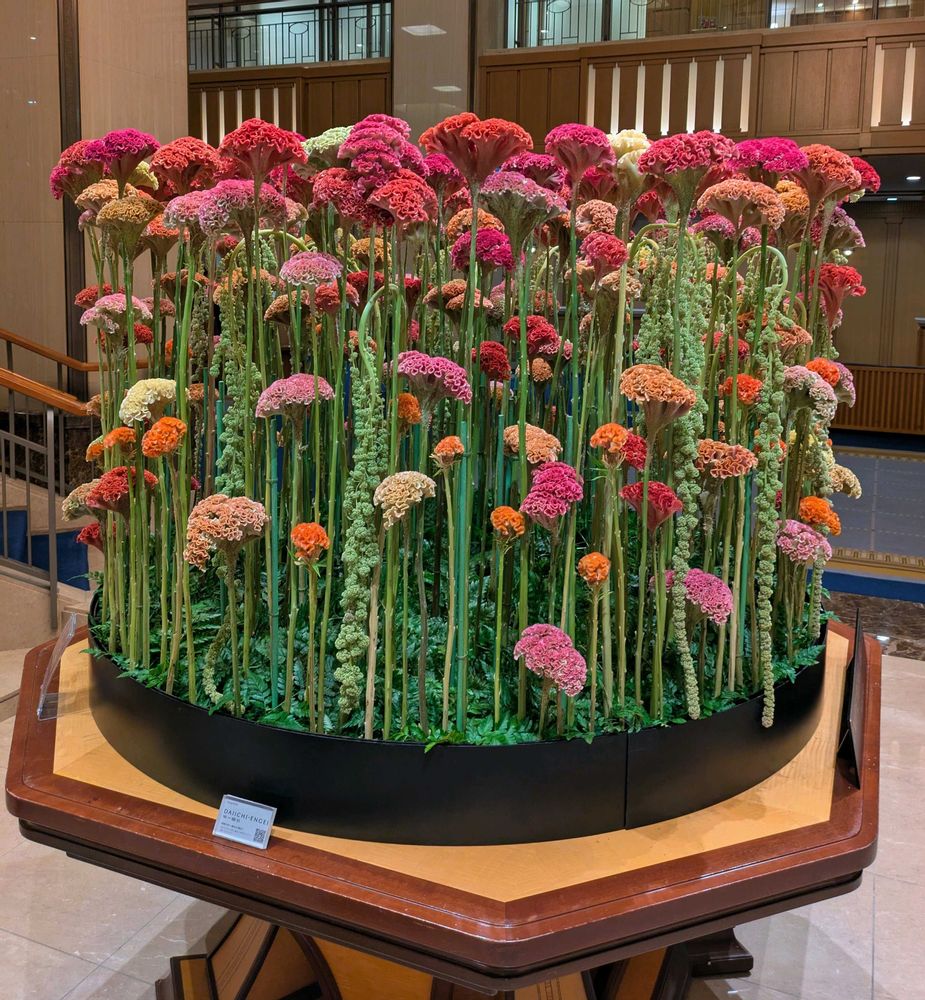 ケイトウ珍しいですよね!ここの装花はいつもきれいでつい見に行きたくなります