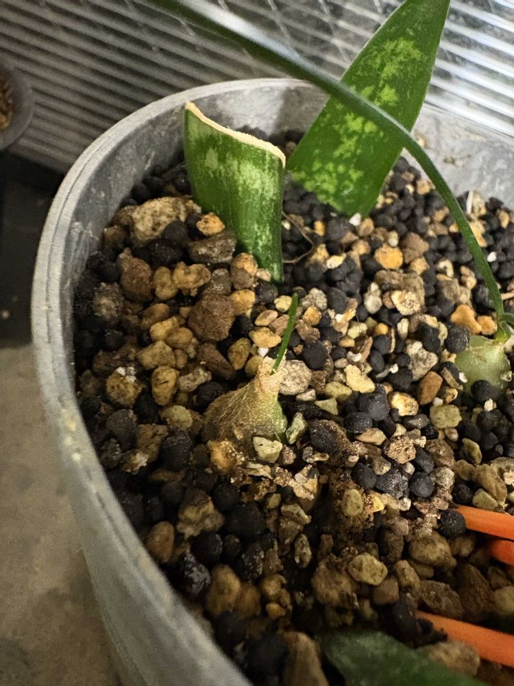 1月に鉢をぶちまけ、傷だらけにしてしまった子、ふた周りほど小さくなり、3月まで生き延びてくれて、それから今日まで発根はしてないけど生きてる!のです。葉っぱが出るの……♡♡