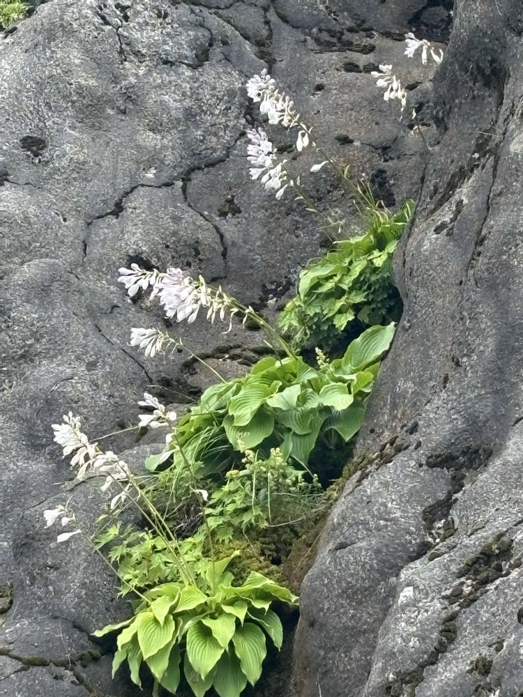 岩場にへばりついて咲いているオオバギボウシ