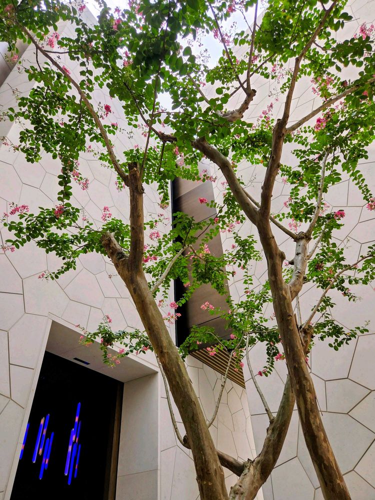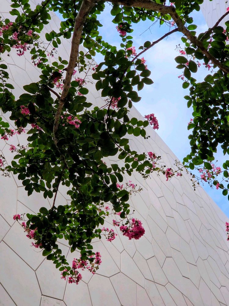 白壁に囲まれつづけているサルスベリ