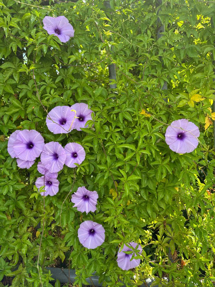 初めて見つけた時は車を停めて写真を撮りました🚗³₃ その後も道端にたくさん咲いてて…調べると宿根性で成長がたくましく 地植えにすると10m以上にもなって 繁殖力旺盛で植える場所に注意とのこと💦