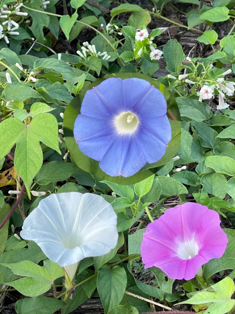 野生の朝顔は、猛暑の中でも、元気に咲いています。