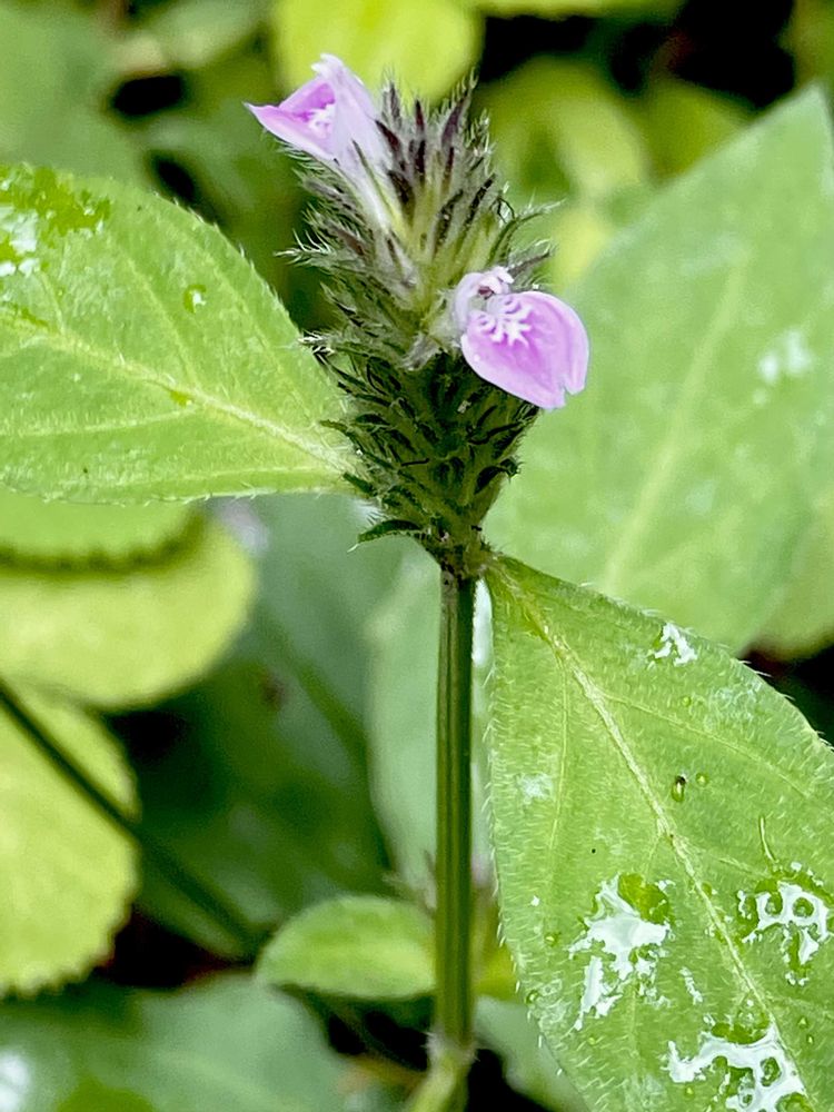 枝先に穂状花序をだし淡紅紫色の唇形花を密に付ける!