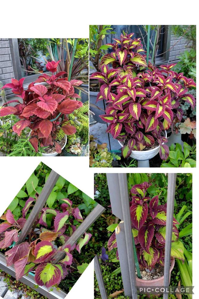 左下の鉢は、2種類入ってます。栄養系コリウスは、葉が萎れず、水切れに強いみたいですね。