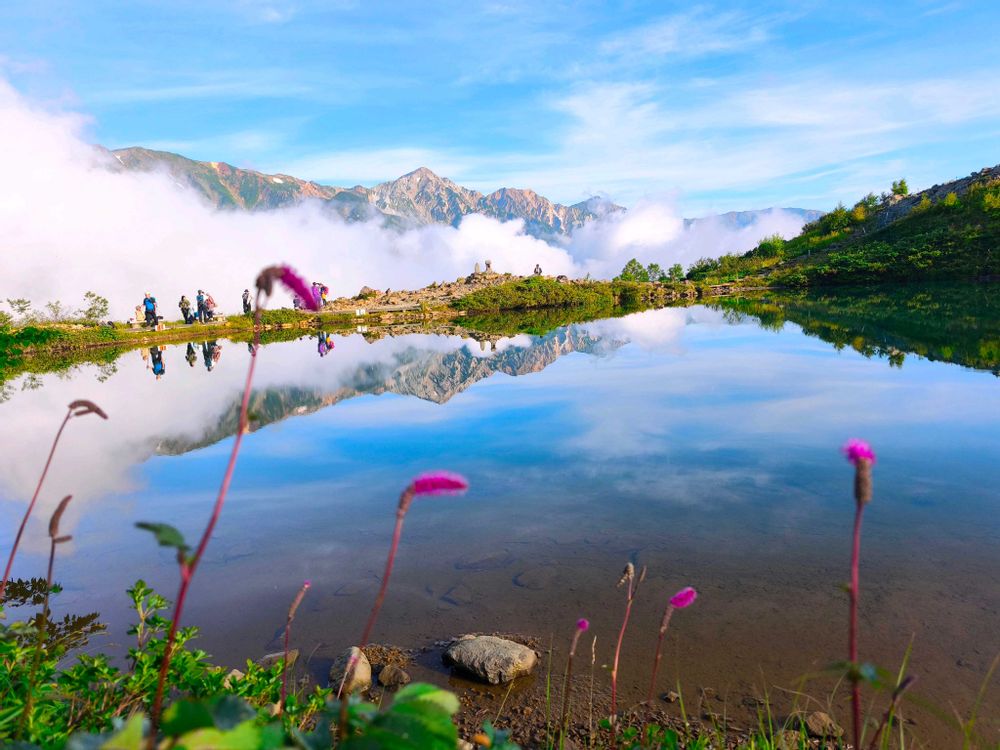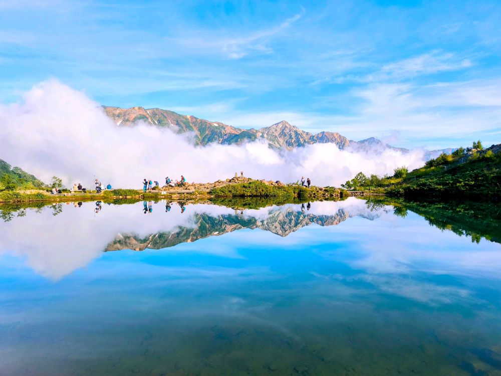天空の鏡と言われる八方池に写りこむ白馬三山を見たくて来たのですが、僅か数十分前まで綺麗に白馬三山が見えていたのに一気に雲が上がり始め白馬三山が隠れてしまいました😰