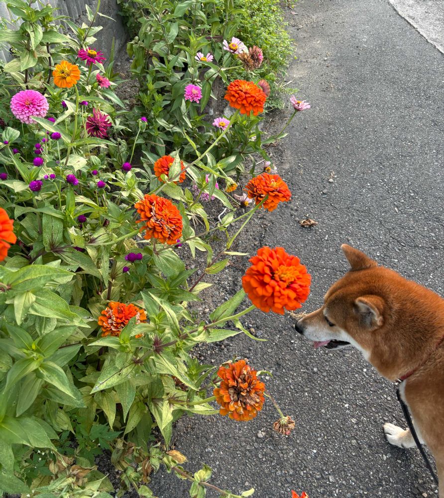 散歩道,人に優しく,ピンクの百日草の投稿画像