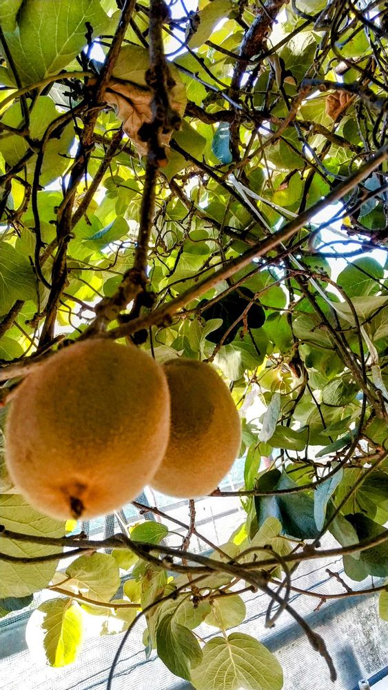 朝日🌅を浴びてキウイたちがぶらさがって❤️いました👍️(笑)