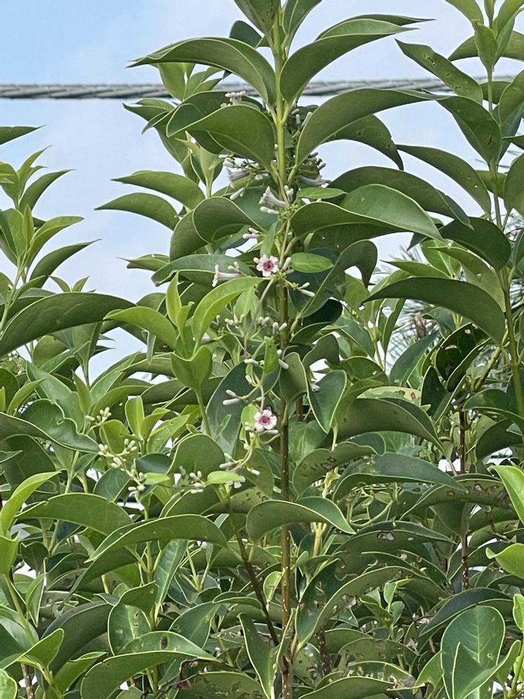 ②モチノキ系のどなたかにサオトメバナが。もはや葉っぱが進化したかとみまごうばかり😅