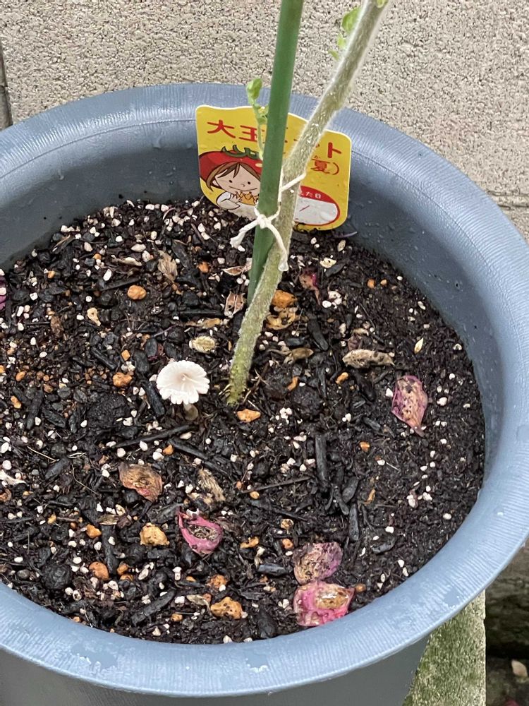 ③モ◯バーガーからもらったトマトのタネ、かろうじて生長してますが、🍄🟫が。