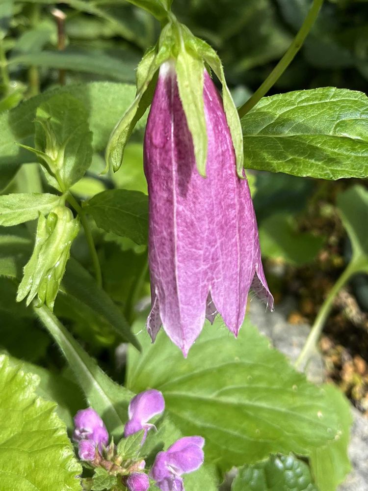 ホタルブクロの新芽から今頃花が咲きました 古い株からも又咲き出しました