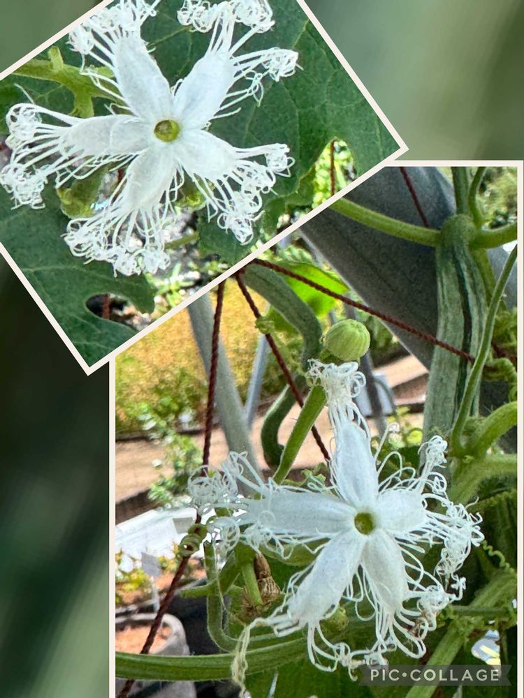 カラスウリと同じく白いレースをあしらった様な花が