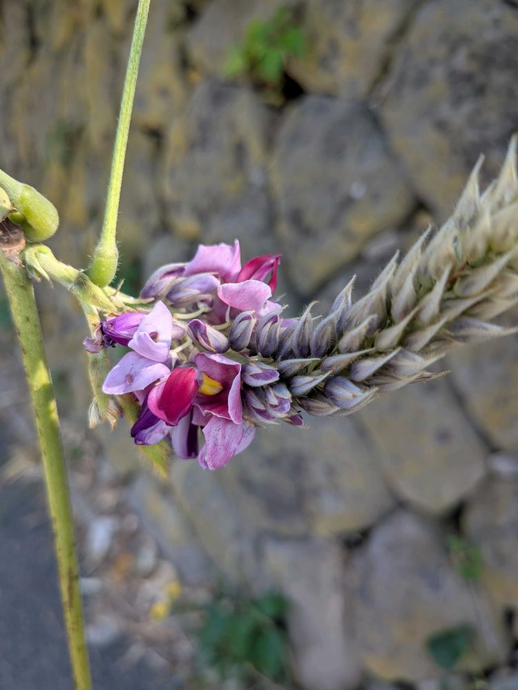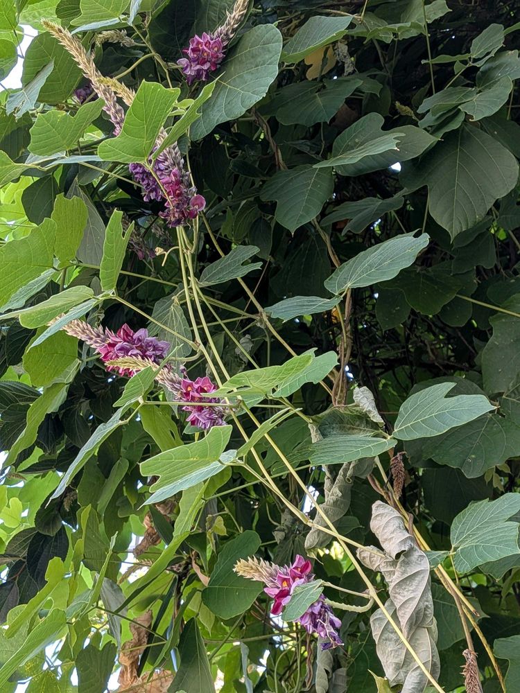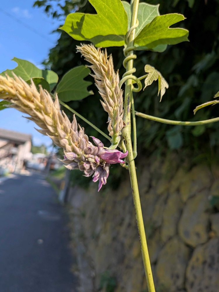 道端の葛のツル。車に当たりそうです。紫💜の可愛いお花のpicをとって少し切りました。切っても切ってもどんどん伸びてしまいます。この時期悩みです。