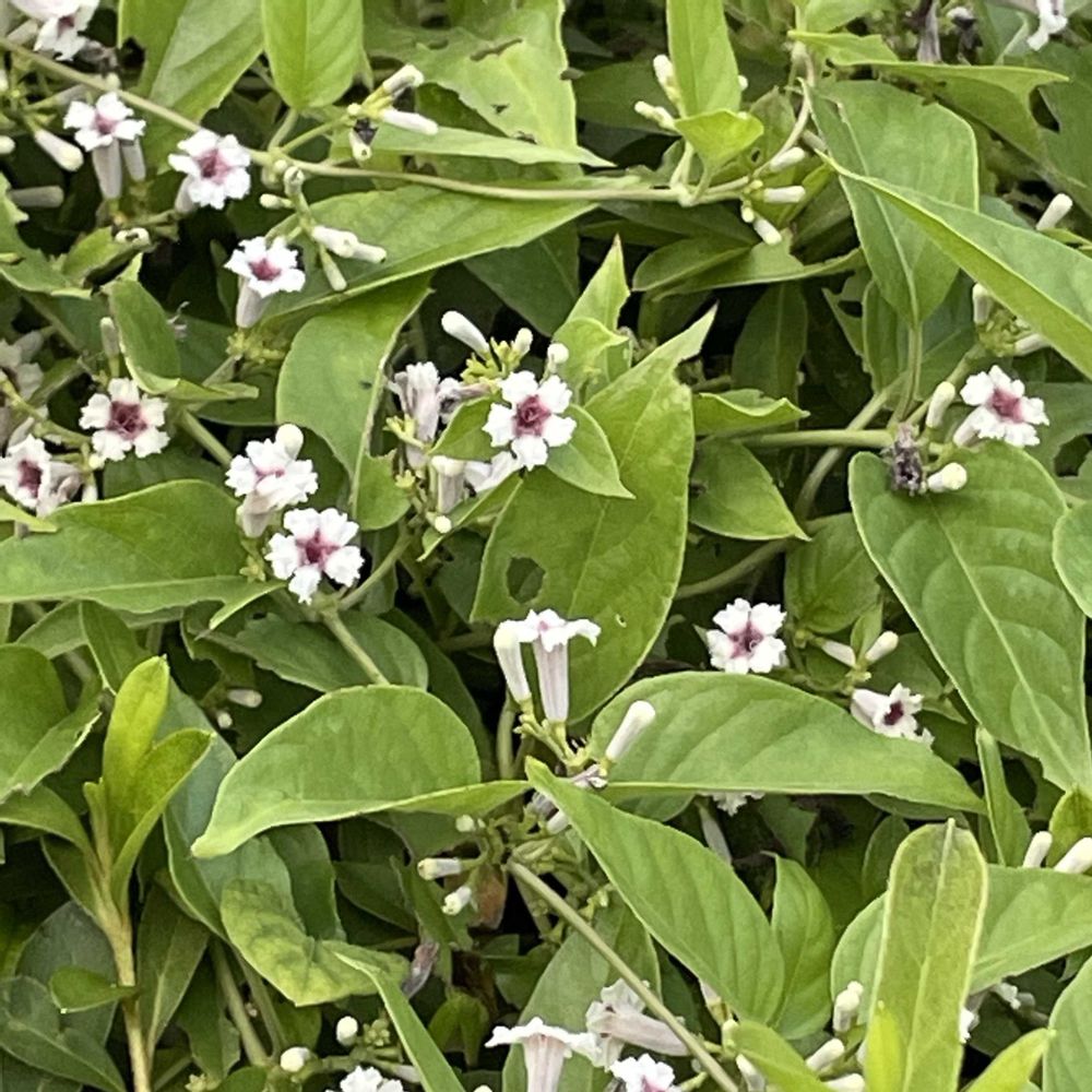 歩道沿いの緑地帯がサオトメバナ(別名ヘクソカズラ)に侵襲されてました😆