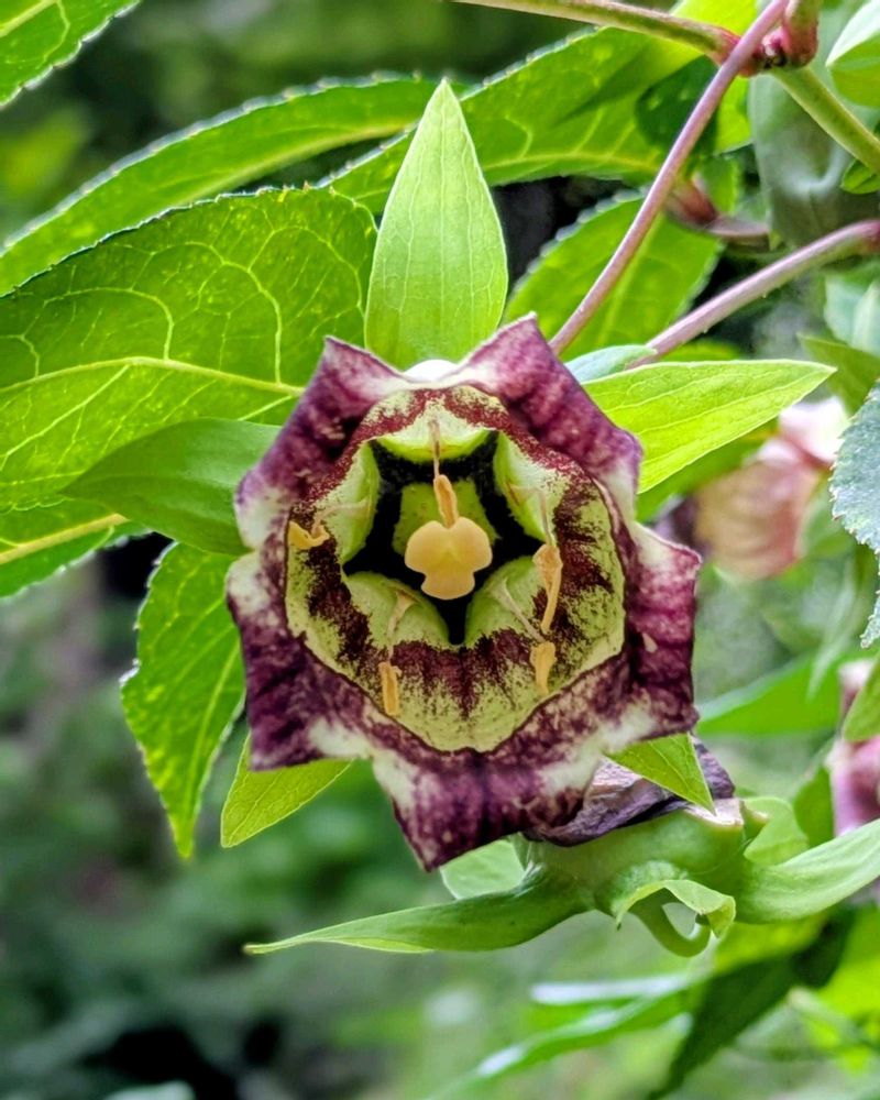 花冠の先が浅く5裂し裂片は黄緑色~乳白色で紫色の斑点があり三角形▽長さ0.5~1㎝で反り返ってます🌿💜🌿