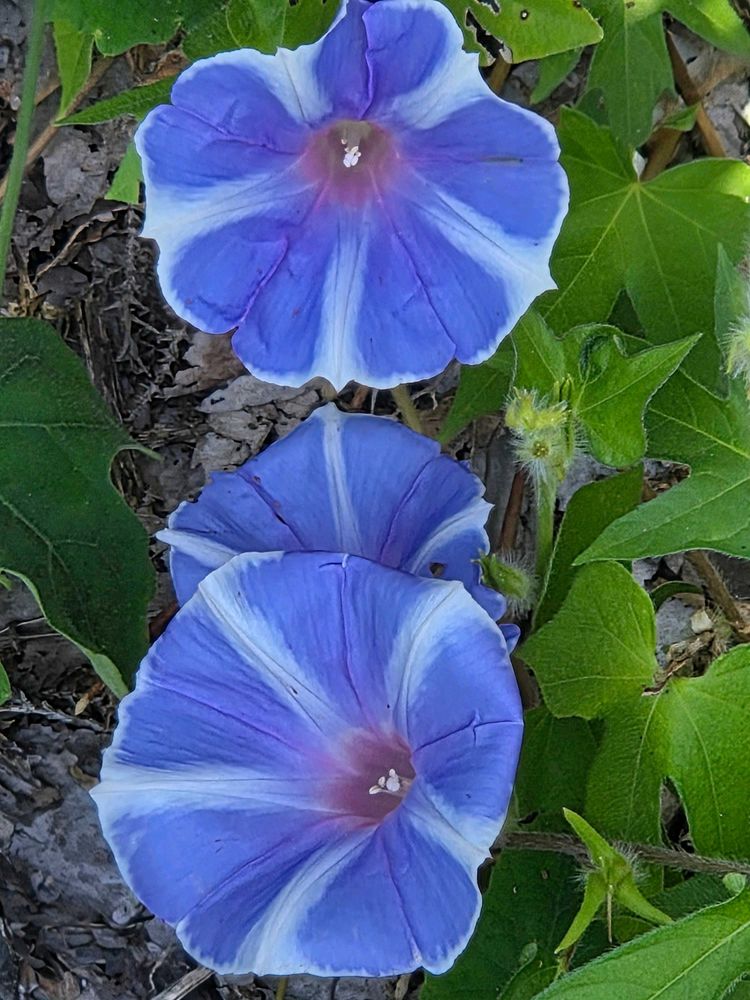 今朝もアサガオさん沢山頑張って咲いていました🙋💙🤍