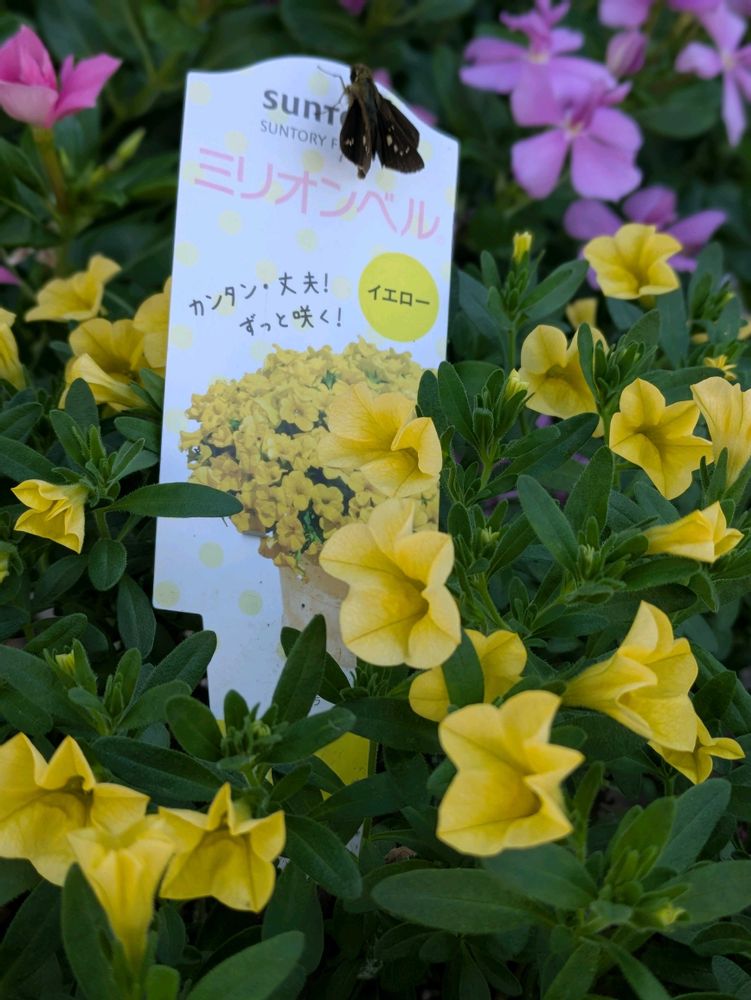 真っ黄色のミリオンベルさんなのですが蝶々さんが🏷️がお気に入りのご様子でした…ふふッ☺️🤭