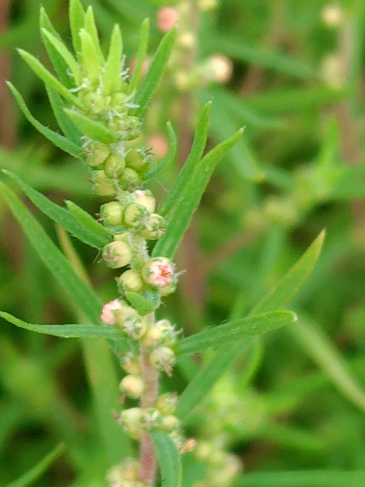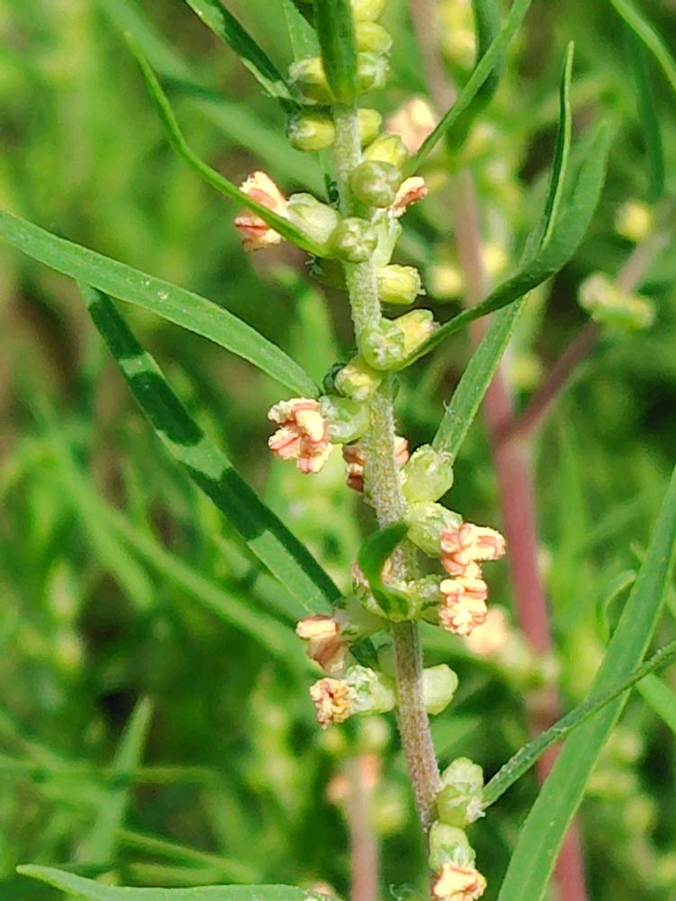コキアのお花、とても小さいけれど、茎が赤くなって伸びた頃に、このように咲いてくるのです🎶