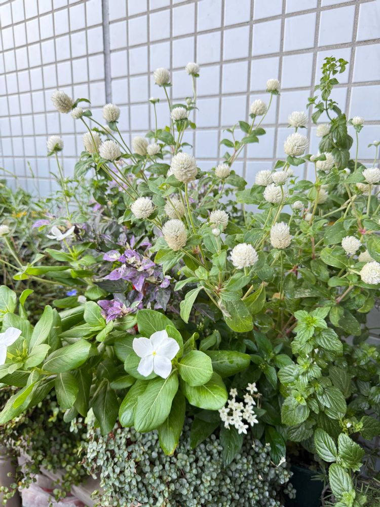 ホワイトを意識した寄植えの千日紅が一番元気かも😄
