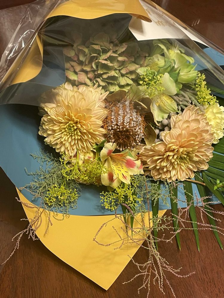 お祝いの花束💐めっちゃ素敵ですね〜😍優しいお孫さん達にお祝いされて幸せな時間ですね〜😄
