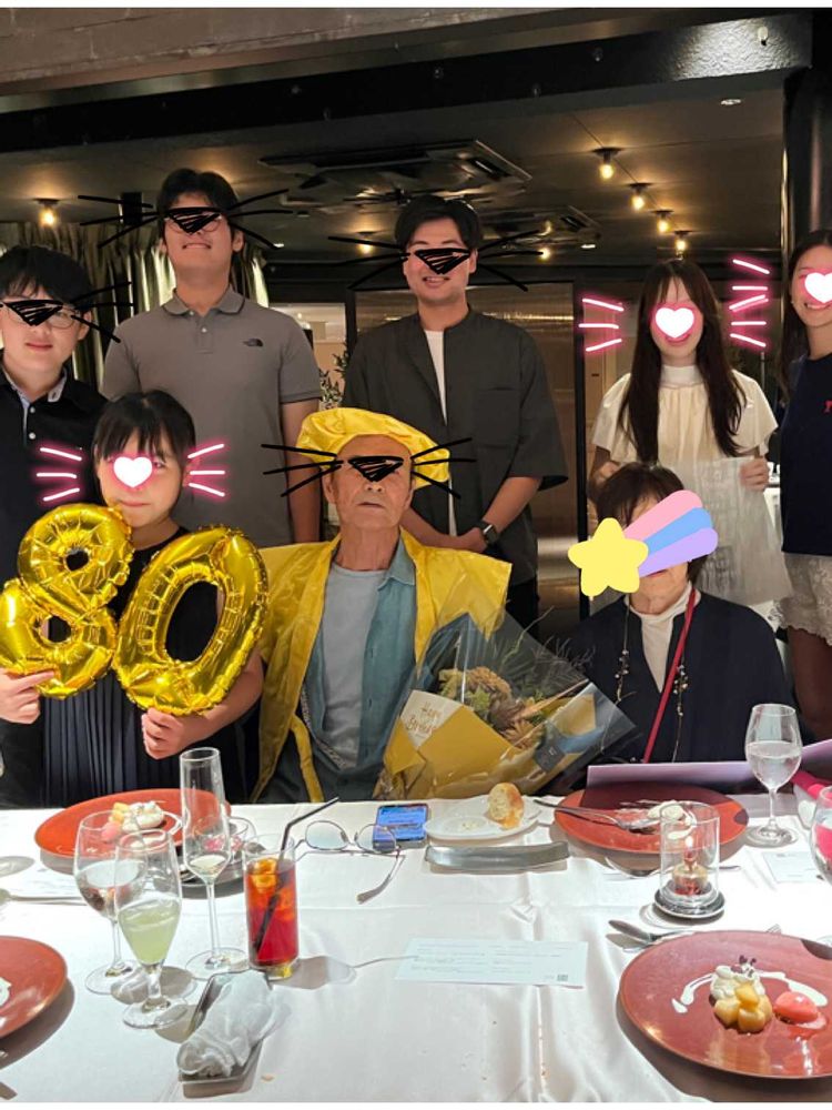 傘寿✨️おめでとうございます。ご家族揃ってのお祝い、さぞかし賑やかで、ご主人も嬉しかったでしょうね!まだまだ暑い日が続くようですので、体調に気をつけてお過ごしくださいねー🍀