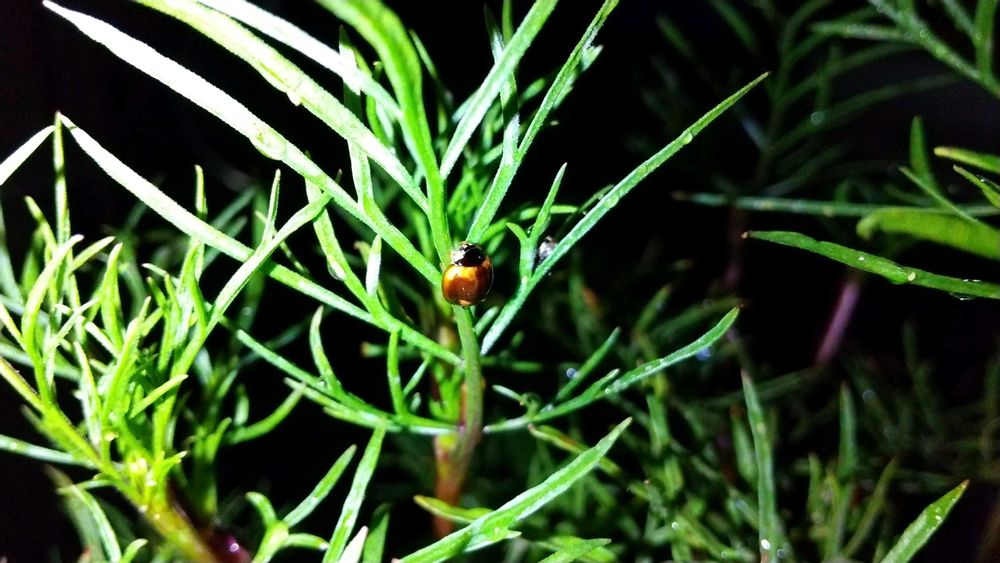 今外に出たらダンダラテントウが蛹から羽化していました❗️さてどんな模様になるのでしょうか?