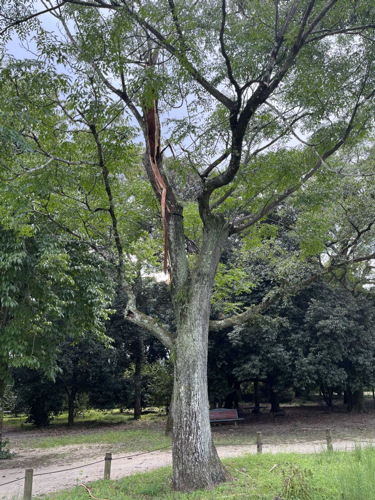 8月25日に京都市を襲った大雨で京都府立植物園のセンダンの木が落雷の被害を受けたそうです。