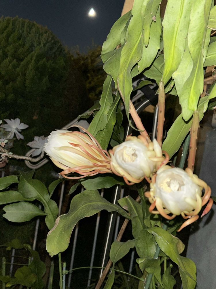 月下美人がお月さまと一緒に見られて