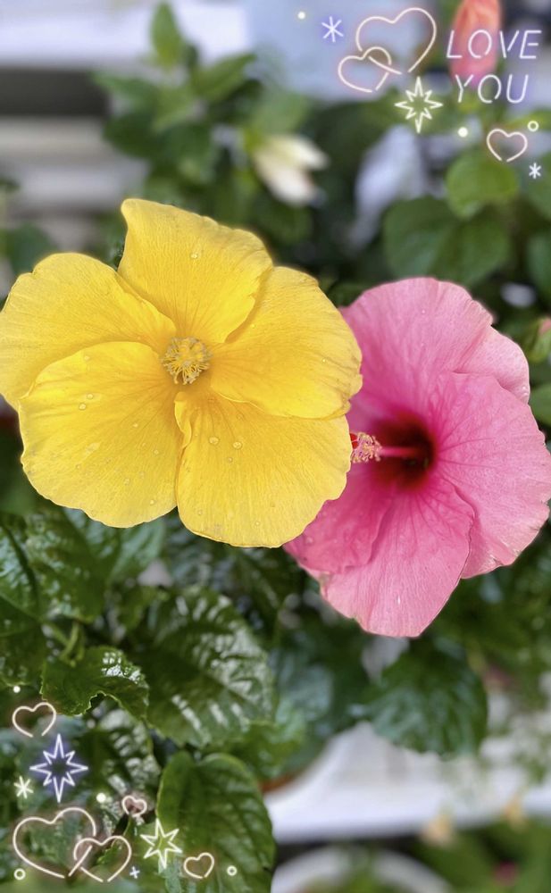 2色のハイビスカス、仲良しだね〜😆