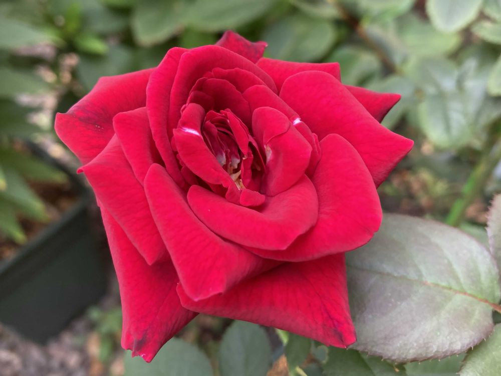 ②強いはずのグレーフィンディアナがうどんこ病に悩まされ、一番花後早々に場所変えしつつ養生中でしたが…摘蕾のタイミングを逃し、ビロードがかった小さめの花を1つ…♡