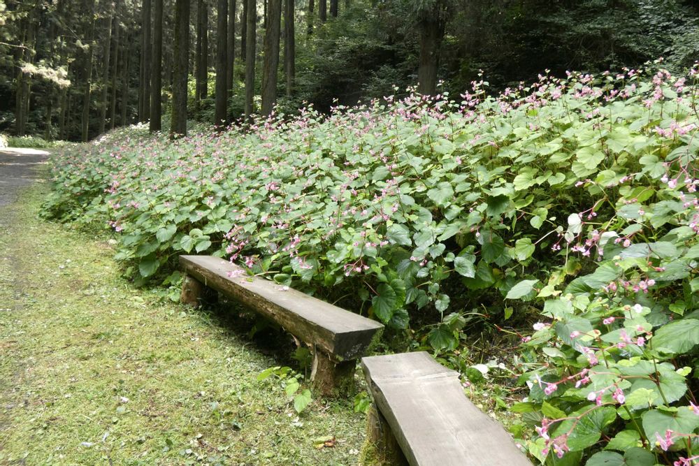 地域の方々が、手入れをして毎年この時期にはシュウカイドウや春には山野草を山沿いに育てています。