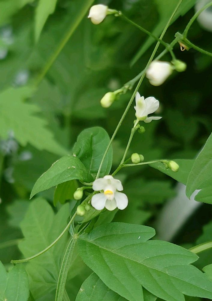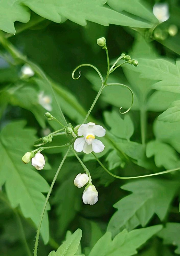 白い小さな花のフウセンカズラ、実もハート型の種も皆可愛いです♡🌿