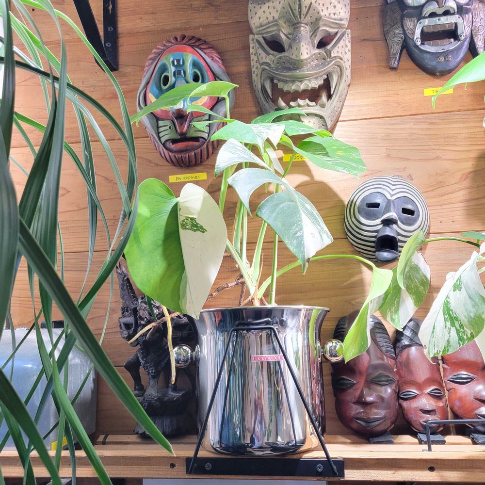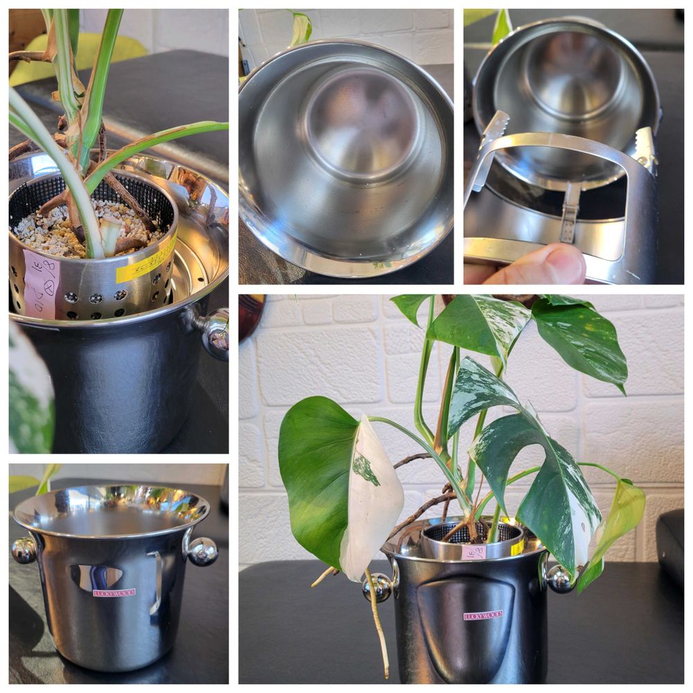 こんにちは,キャンプコンロに観葉植物,さらにワインクーラーの中に,素敵すぎますね🩷