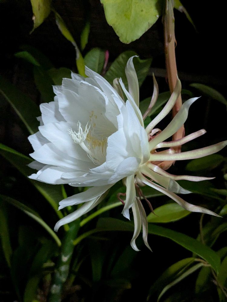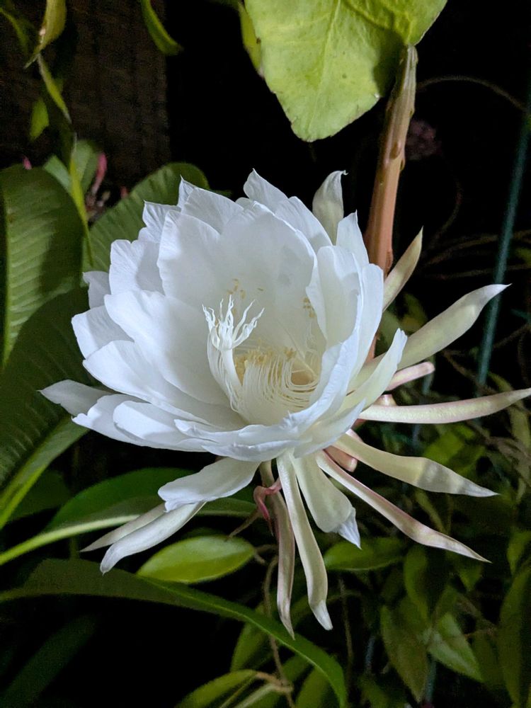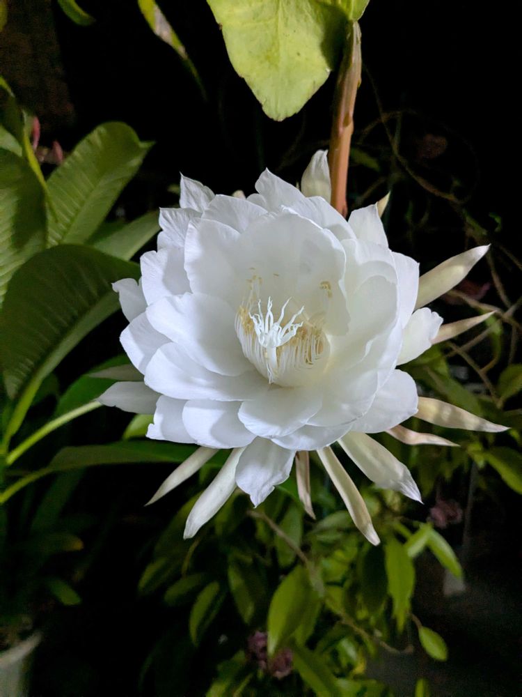 闇夜にパット浮き出た豪華絢爛白い花月下美人‼️