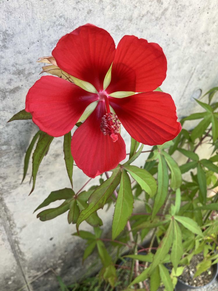 三年前種から育てたモミジアオイが咲いてくれてました😍