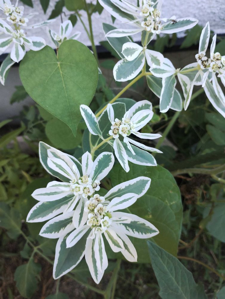 2枚目、3枚目は暑い中元気に咲き出したクレロデンドルム、初雪草。