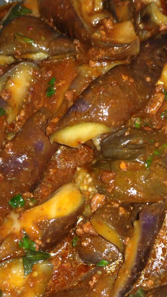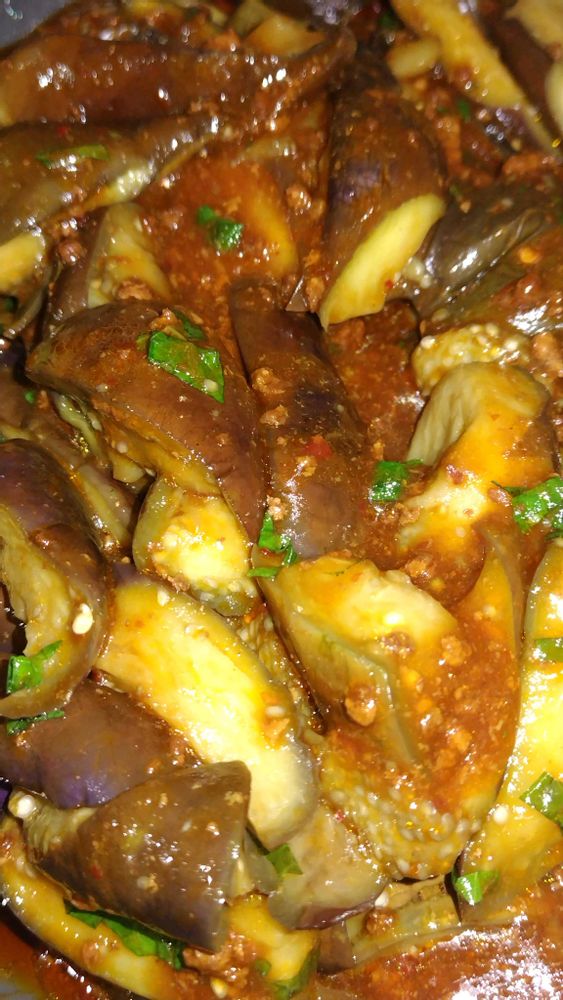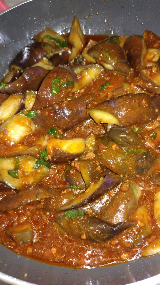 我が家の菜園で採れた茄子10本と大葉6枚で