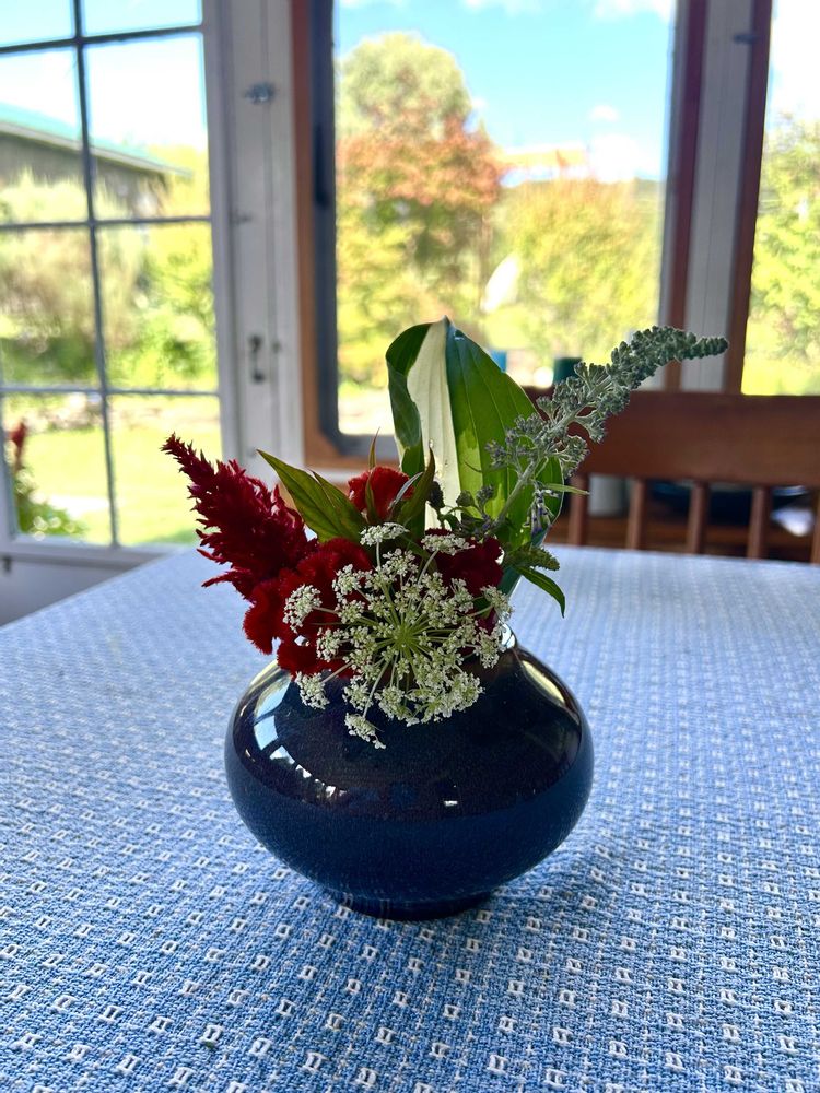 ケイトウは花器を選ばす赤❤️が映えますね。