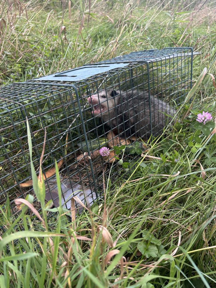 オポッサムもたくさんいれば畑に入って熟れたものを食べることはあると思います。うちは畑は今作っていないので、害は何もないです。うちの罠は生け取りようなので、捕まえた動物は基本放します。グラウンドホッグとスカンクはかかったら🦨川向こうへ車でわなごと運んで、放してきます。