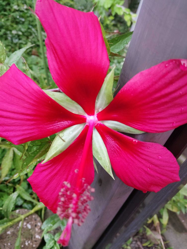今朝モミジアオイが1輪咲いてました。赤くて大きく元気もらえる花です。♥️♥️♥️♥️
